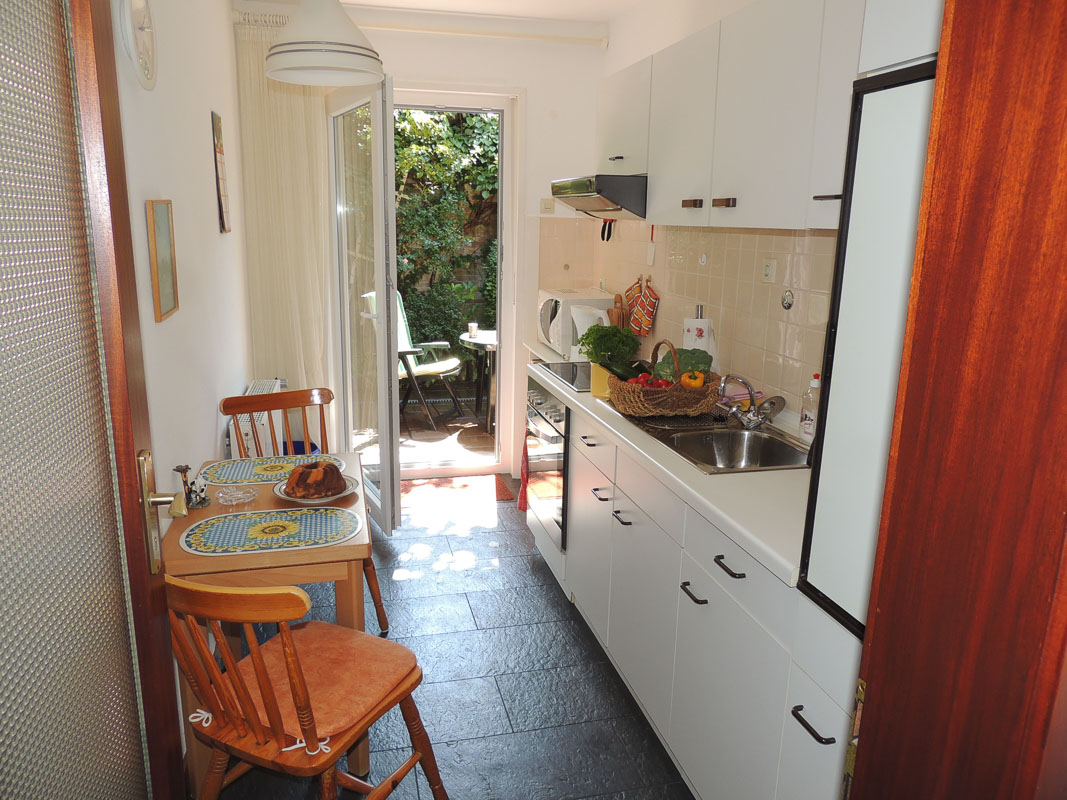 Die Küche ist mit einer Küchenzeile (Herd, Backofen, Kühlschrank) ausgestattet. Außerdem stehen eine Mikrowelle, Kaffemaschine, Toaster und Wasserkocher zur Verfügung. Auch eine Tiefgefriermöglichkeit ist vorhanden.